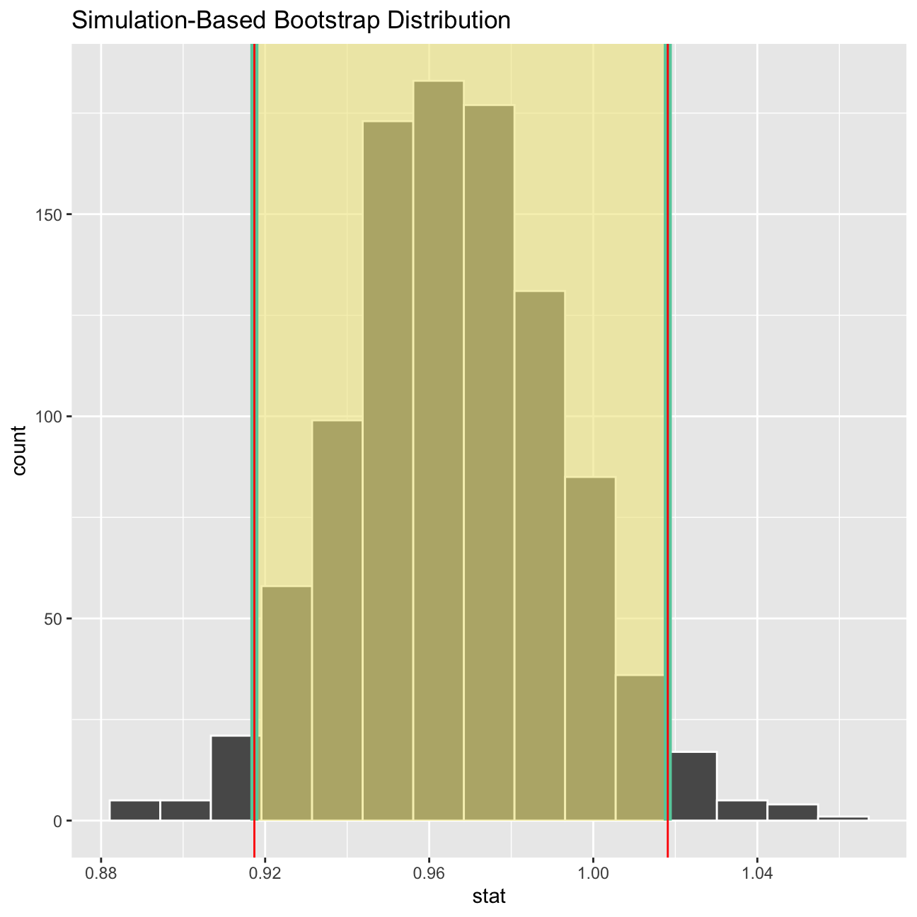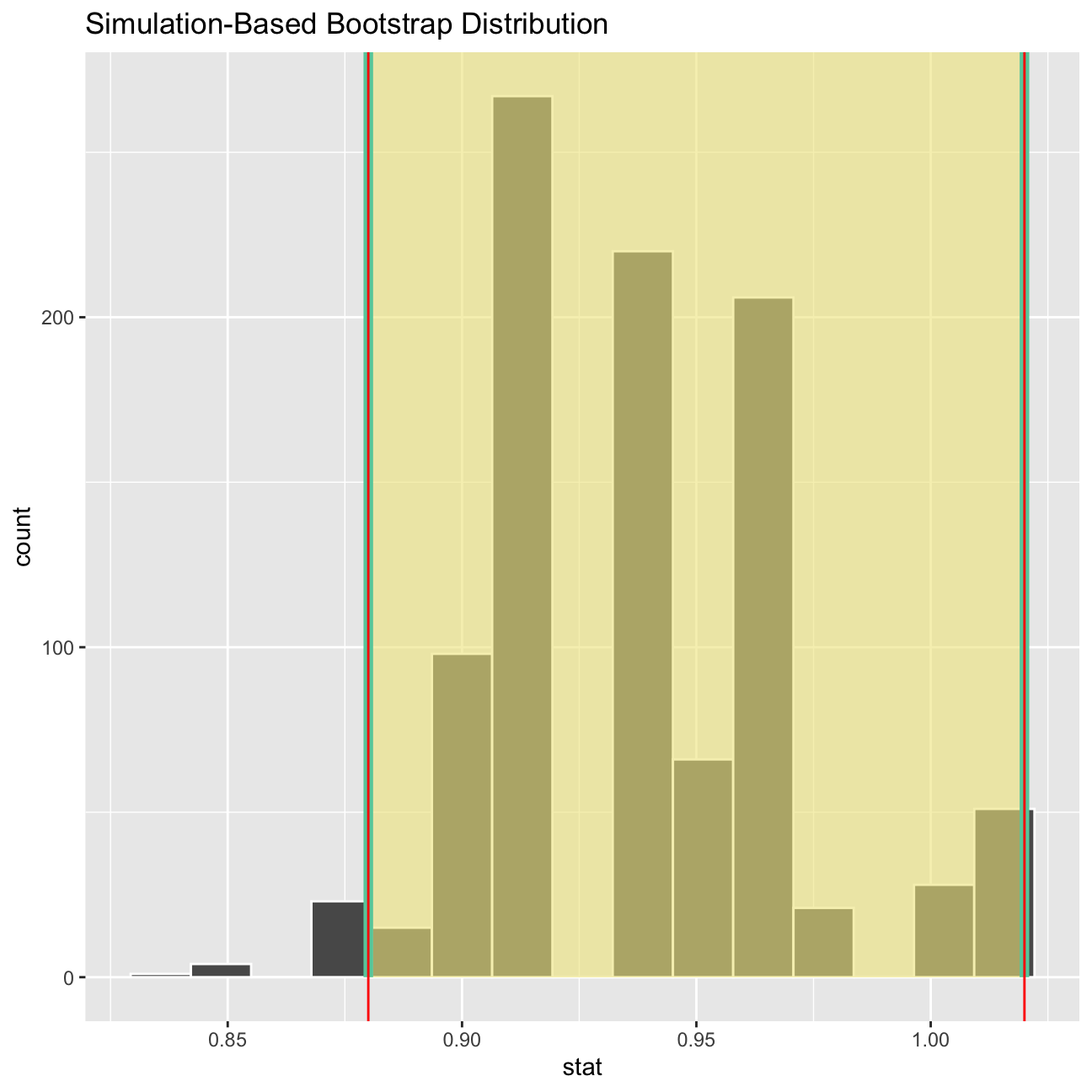 shade_ci(endpoints = percentile_ci,fill = "khaki")+