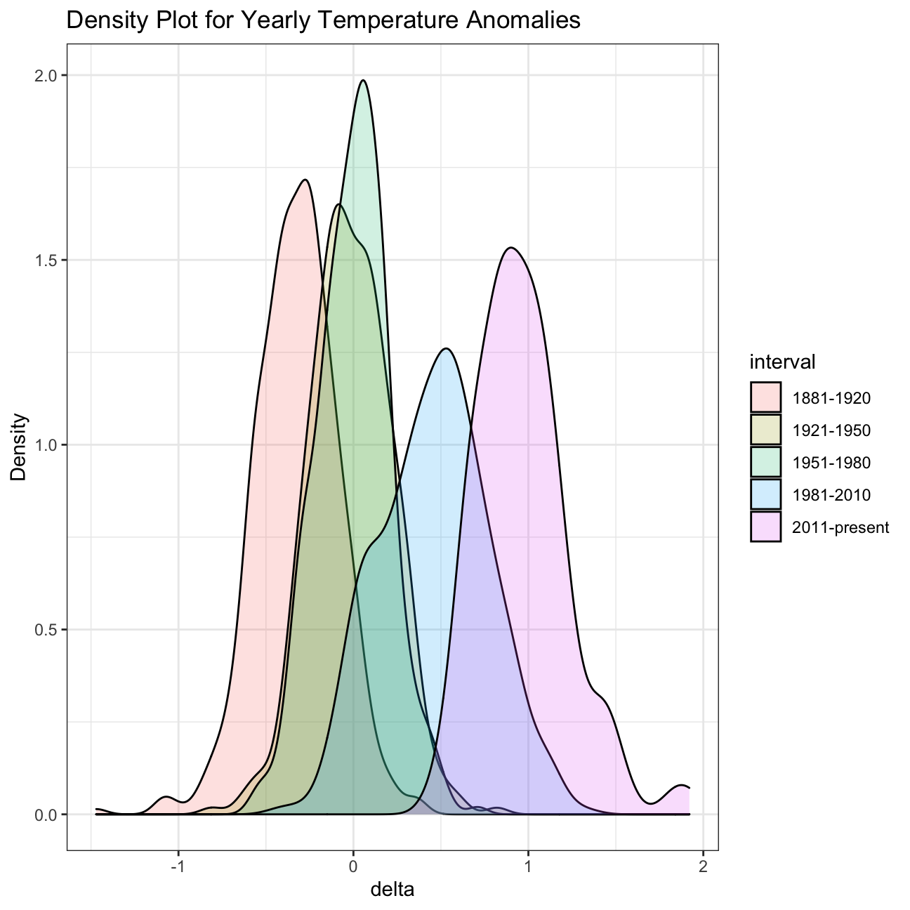 title = "Density Plot for Yearly Temperature Anomalies",