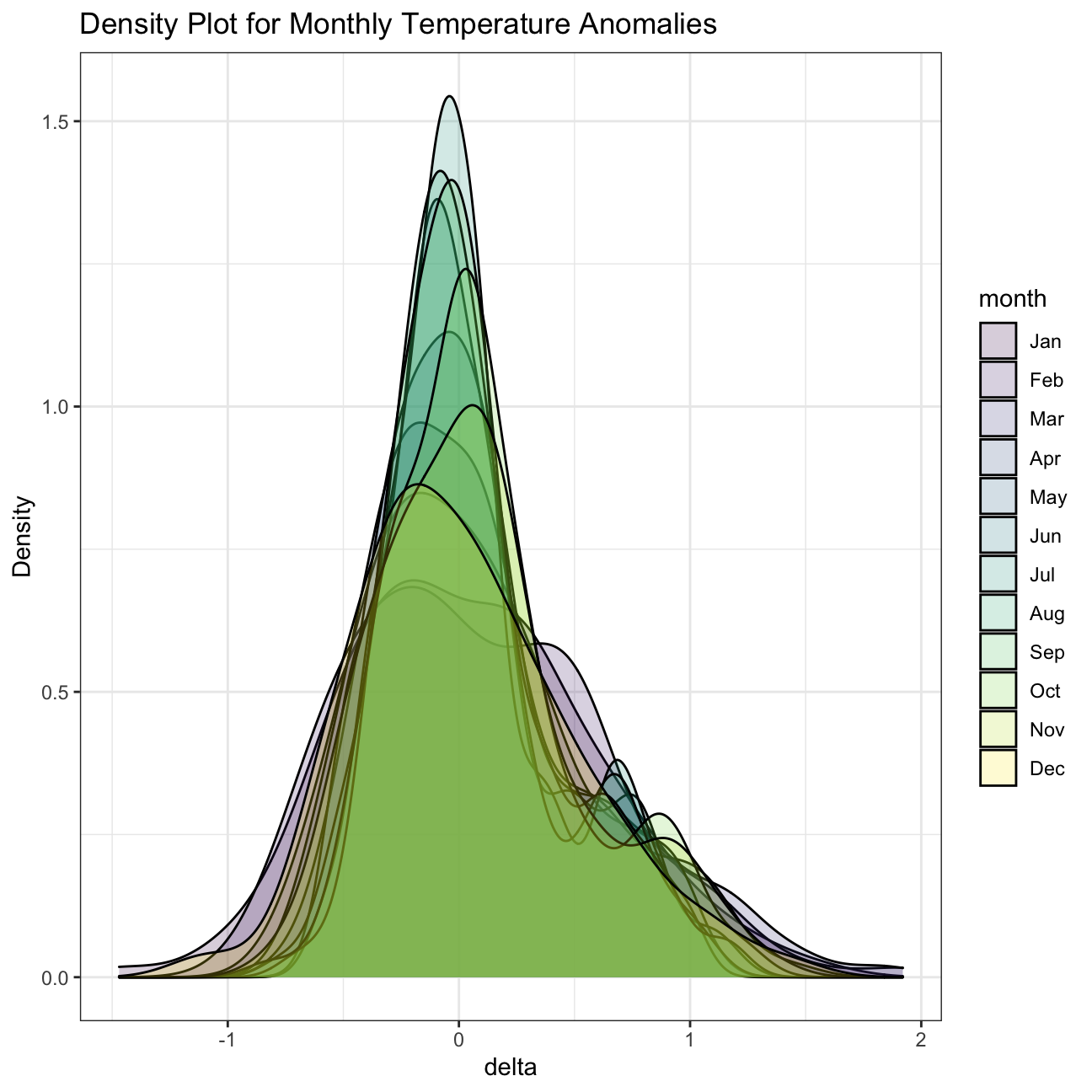 title = "Density Plot for Monthly Temperature Anomalies",