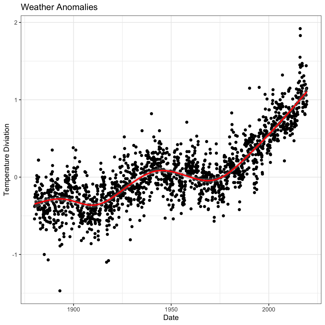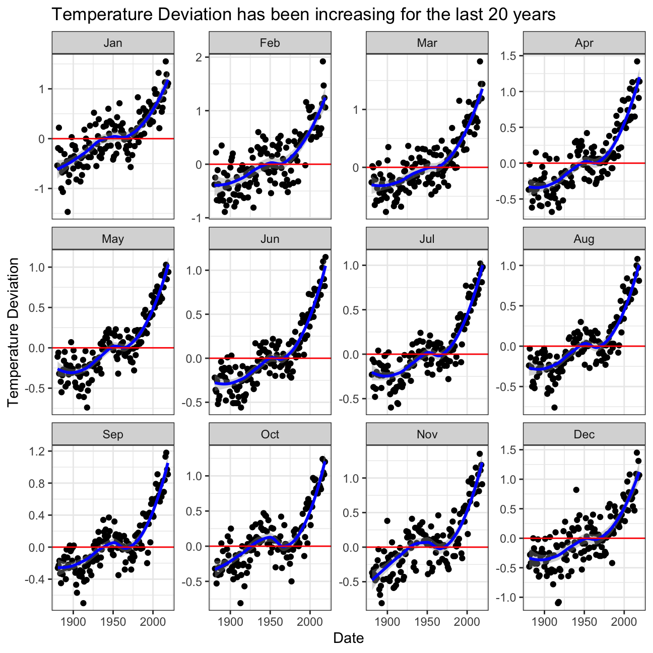 labs(title="Temperature Deviation has been increasing for the last 20 years",